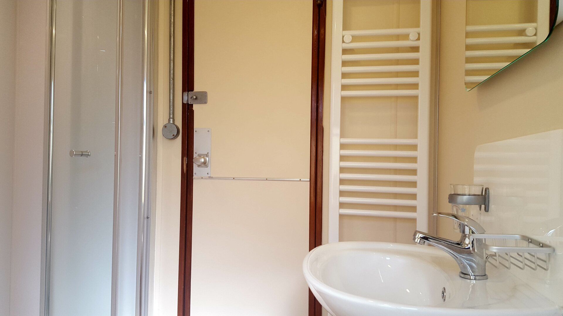 The Bathroom is the first door to the left of the coach entrance with its original ‘Lavatory’ sign.